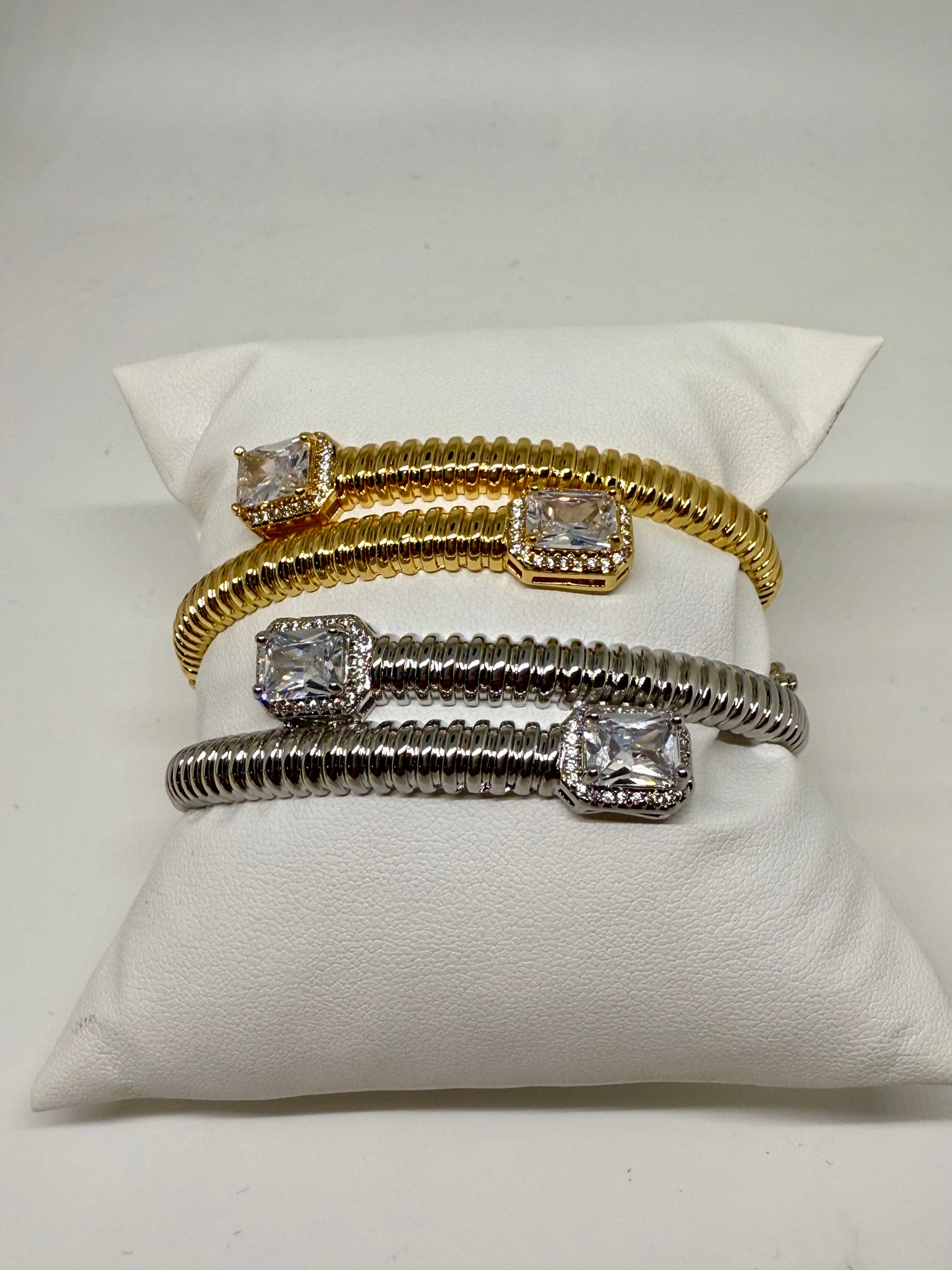 coil bracelet cuff available in silver and gold. 18K gold plated